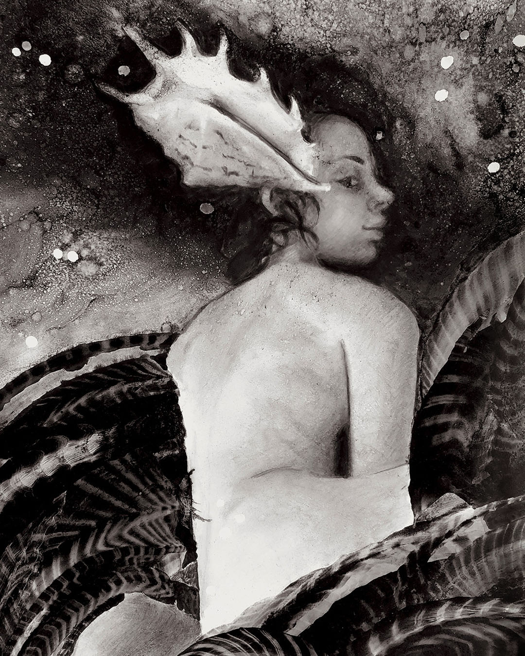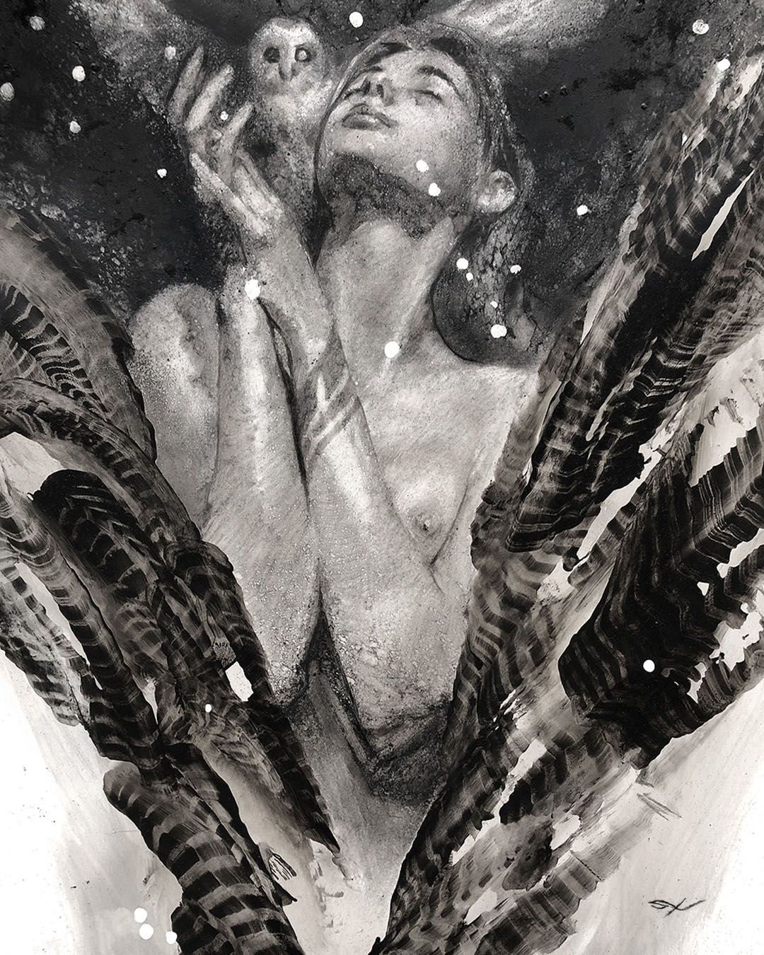Wild nights 🟡 Charcoal and ink | 40x50 cm